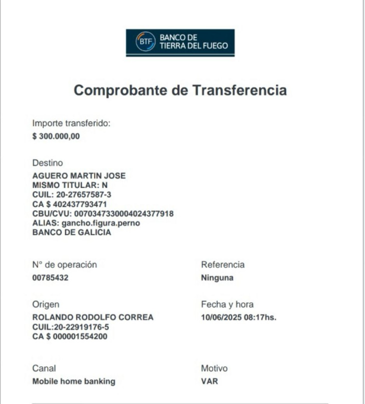 En un audio clave, que complementa la denuncia inicial de Correa, se escucha al diputado Pauli no solo reclamar el pago, sino que instruye el cambio definitivo en la metodología. Luego de que Correa le enviara un comprobante, Pauli responde agradeciendo y dando una nueva orden: «A partir de ahora mandaselo directamente a Martín, que es el que se encarga de pagar los alquileres».
