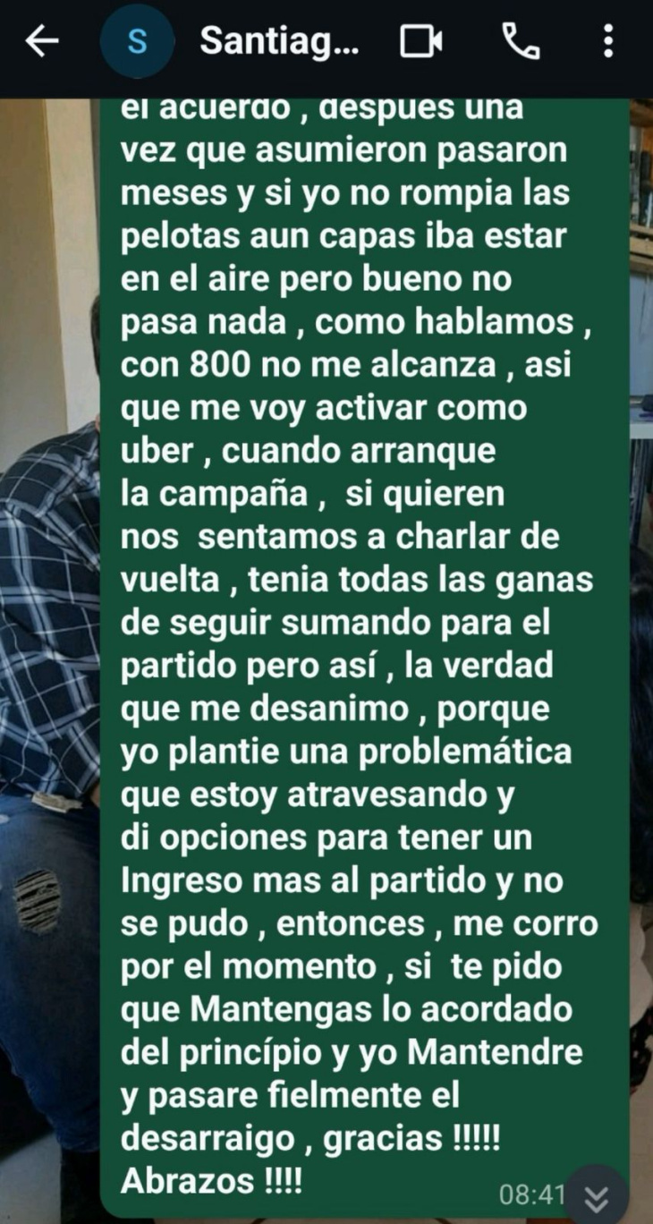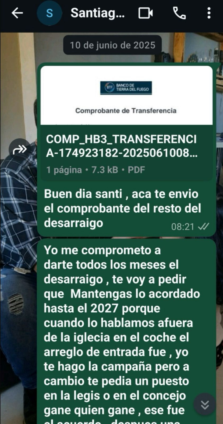 Un nuevo audio; una serie de capturas de mensajes de WhatsApp y comprobantes de transferencias -verificados- exponen con lujo de detalles el mecanismo de financiamiento irregular del bloque de Libertad Avanza en Tierra del Fuego