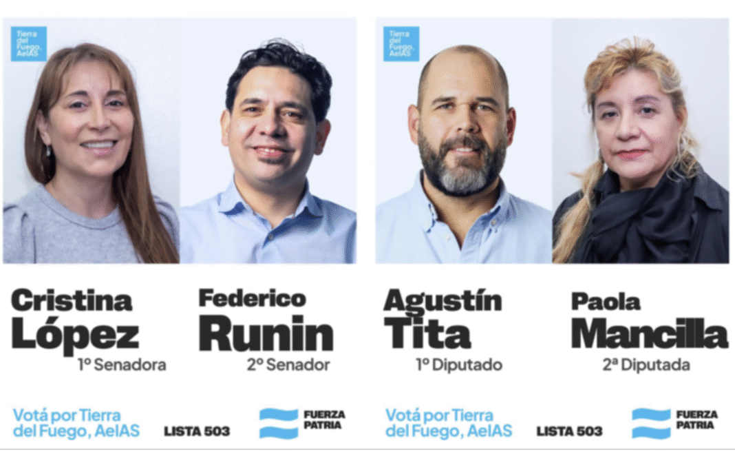 El frente Fuerza Patria Tierra del Fuego AeIAS presentó formalmente este domingo, ante la Justicia Electoral, a sus candidatos y candidatas a senadores y diputados nacionales por la Lista 503, de cara a las elecciones legislativas del próximo 26 de octubre.