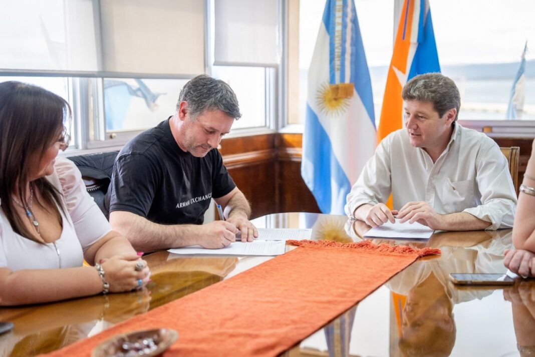 El Gobernador Gustavo Melella encabezó la firma del contrato de obra para las remodelaciones e intervenciones del Hospital Regional Río Grande, acompañado por la Ministra de Obras y Servicios Públicos, Gabriela Castillo, la Ministra de Salud, Judit Di Giglio y Ariel Gustavo Prokopiw, de la empresa PROALSA S.R.L.