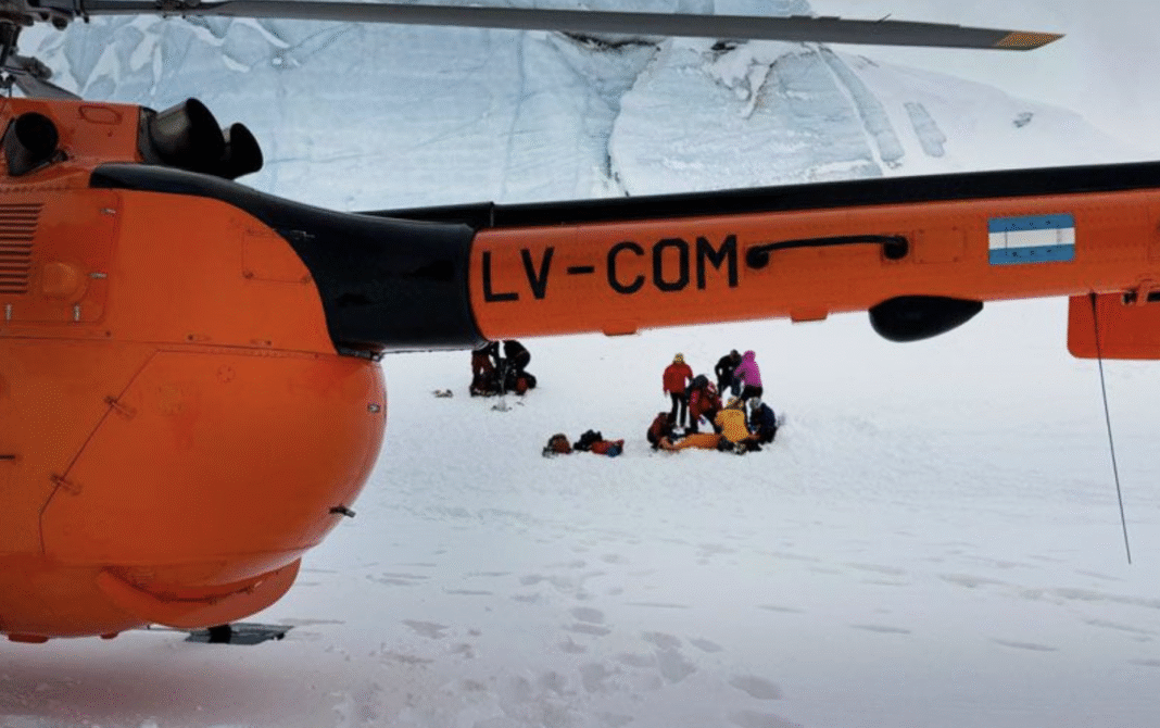 Un operativo de emergencia se desplegó este sábado en el glaciar Ojo del Albino, en Ushuaia, cuando un participante de una capacitación para futuros guías de montaña sufrió una lesión en la clavícula. La Comisión de Auxilio coordinó la aeroevacuación con un helicóptero de HeliUshuaia, lo que permitió trasladar al herido de manera rápida y segura.